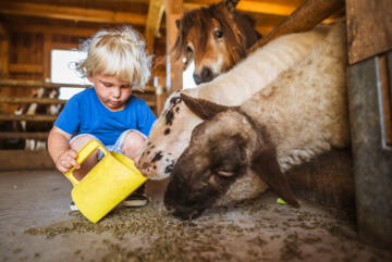 Das Tierhaus auf dem Moierhof ist ein wahres Paradies für kleine Tierfreunde. Hier leben Ziegen, Esel, Enten, Kaninchen, Ponys und Schafe in einem gemütlichen, großzügigen Zuhause und freuen sich über jede Streicheleinheit. Ein besonderes Highlight: Die Kinder können nicht nur hautnah dabei sein, sondern auch auf der Empore direkt über den Tieren schlafen – ein unvergessliches Erlebnis, das Groß und Klein begeistert!