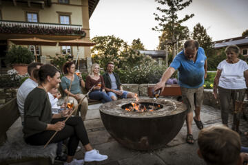 Wir lieben die gesellige Atmosphäre, die unser Feuerring schafft – hier lernen sich die Familien untereinander kennen, tauschen Urlaubserlebnisse und Ausflugstipps aus und oft entstehen neue Freundschaften, während die Kinder gemeinsam spielen.