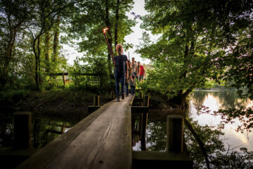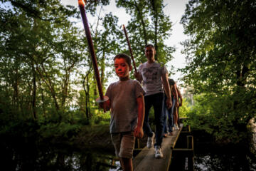 Bei unseren Nachtwanderungen entlang der Alz tauchen Kinder und Erwachsene in eine ganz besondere Atmosphäre ein. Im warmen Schein der Fackeln entdecken sie die Natur, lauschen den nächtlichen Geräuschen und genießen die Stille der Umgebung. Tagsüber ein Ort zum Schwimmen und Paddeln, wird die Alz bei Dämmerung zu einem magischen Ausflug.