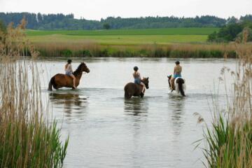 Barfuß im Wasser, begleitet von der Ruhe der Natur – bei uns erlebt ihr Reiten in seiner schönsten Form. Mit den Pferden an deiner Seite tauchst du in die Naturidylle des Moierhofs ein und genießt das Gefühl von Freiheit und Leichtigkeit. Ob beim Planschen im Wasser oder beim entspannten Ausritt: Diese Momente verbinden dich tief mit den Pferden und lassen dich den Alltag für eine Weile vergessen.