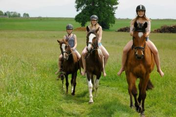 Ob beim Reitunterricht auf unserem eigenen Reitplatz oder bei einem Ausritt durch die idyllische Umgebung des Chiemsees – unsere gut ausgebildeten Pferde sind ideale Begleiter für Reiter jeden Niveaus. Unter der Anleitung unserer erfahrenen Reitlehrer lernen Anfänger den richtigen Umgang mit den Pferden und Fortgeschrittene können ihre Kenntnisse ausbauen. Wer möchte, kann sich auch bei der Stallarbeit einbringen, die Ponys striegeln und putzen. Sicherheit und Spaß stehen dabei immer an erster Stelle.