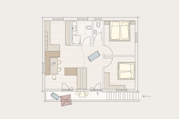 - Schlafzimmer: Elternschlafzimmer, Kinderzimmer mit einem Doppelbett und einem Einzelbett