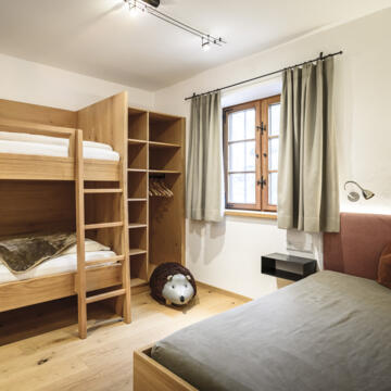 - Schlafzimmer: Elternschlafzimmer, Kinderzimmer mit drei Betten, davon ein Hochbett