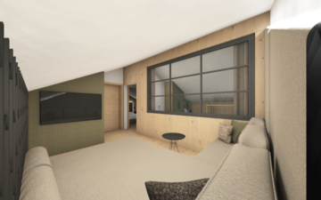 • Wohnraum: Großzügige Wohnraum-Galerie, große Sofa-Ecke, stilvoller Essbereich